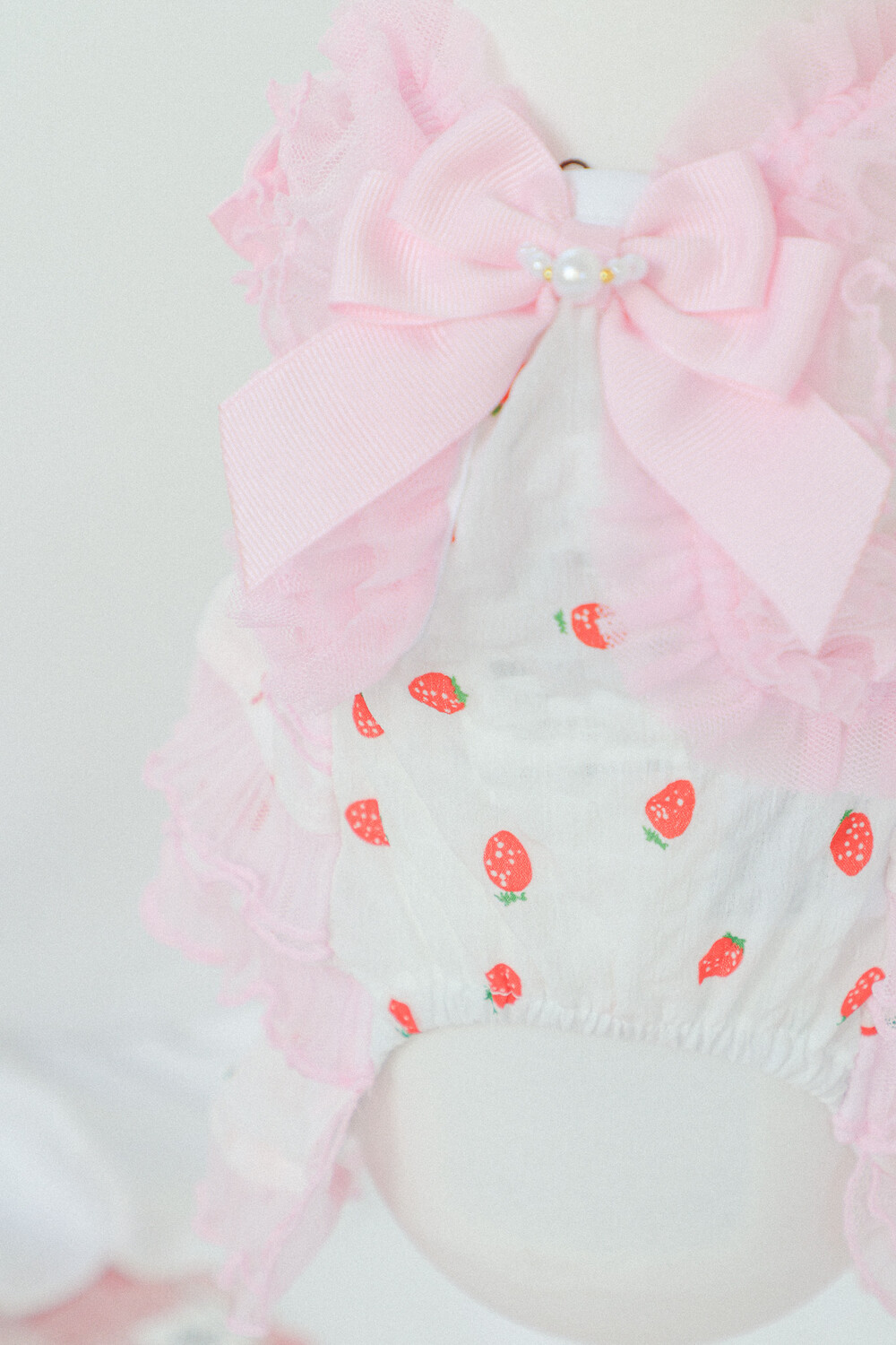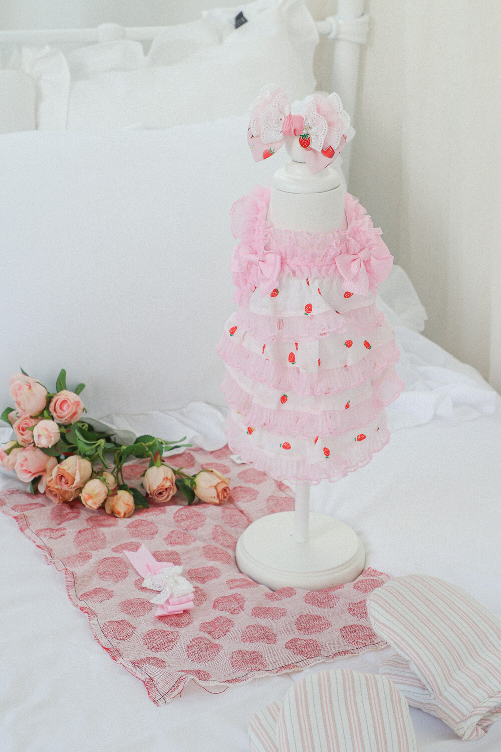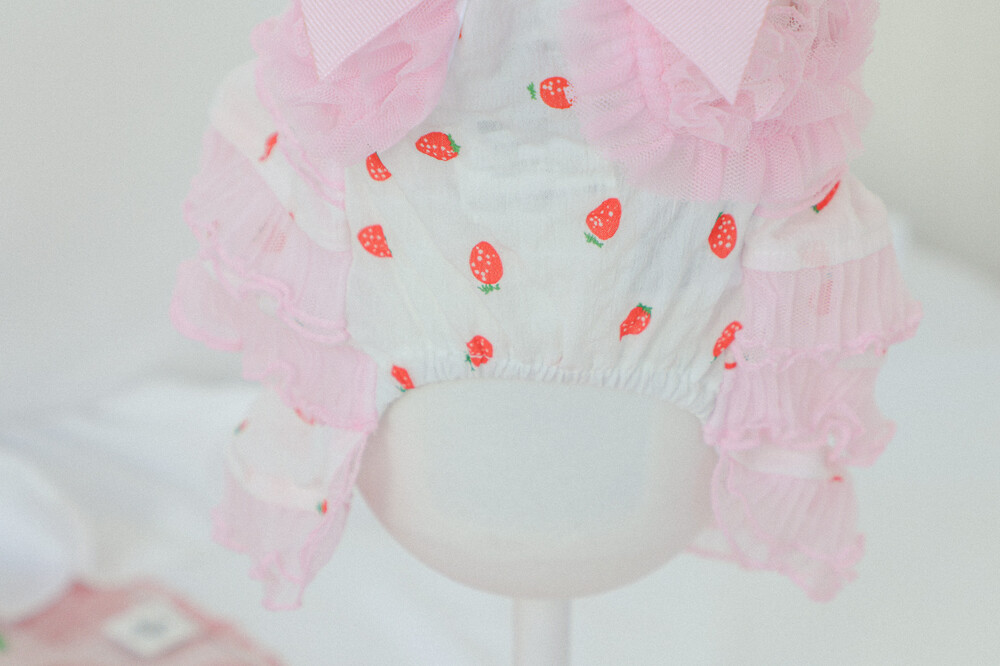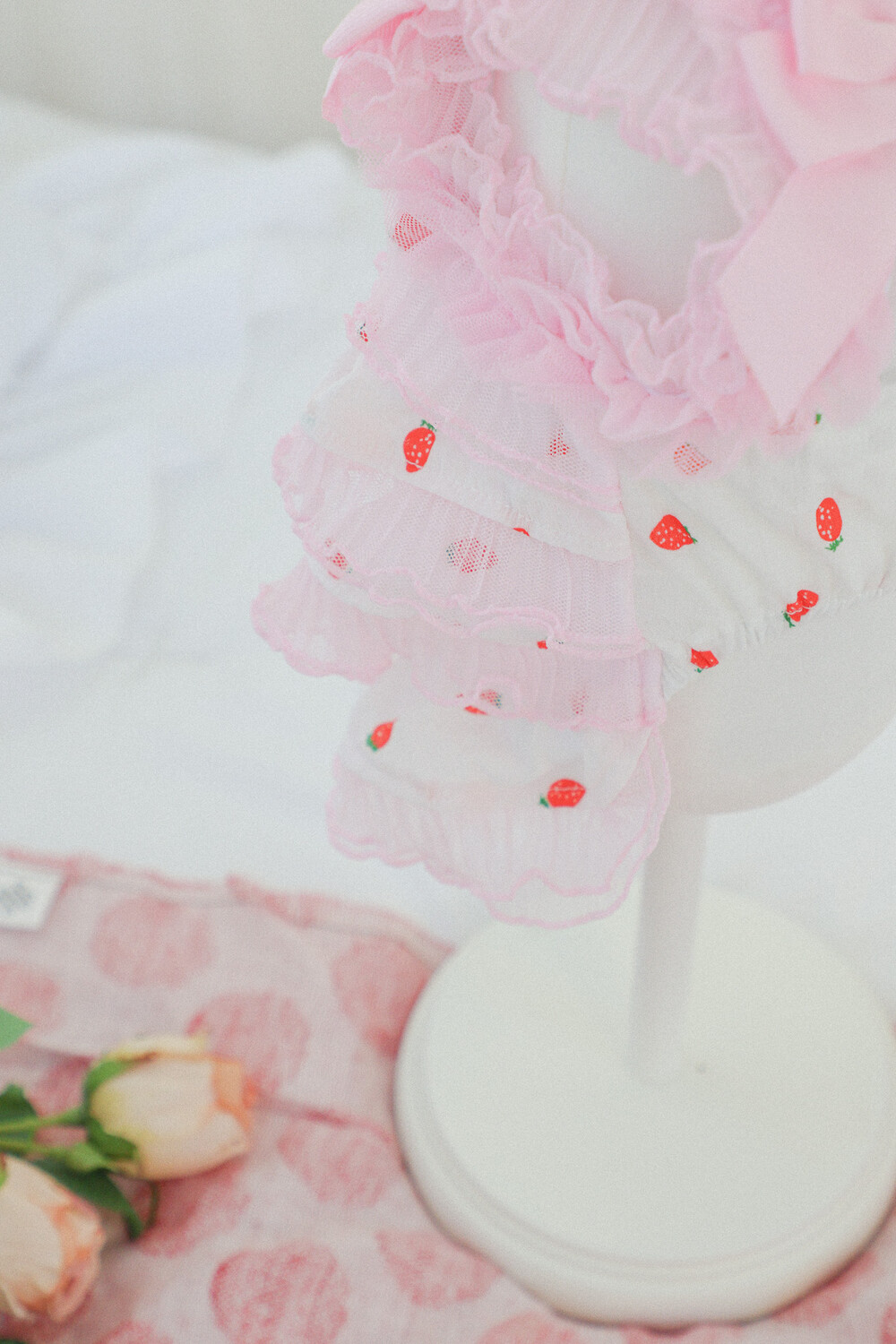 사랑스러운 핑크 컬러에 딸기 패턴이 더해져