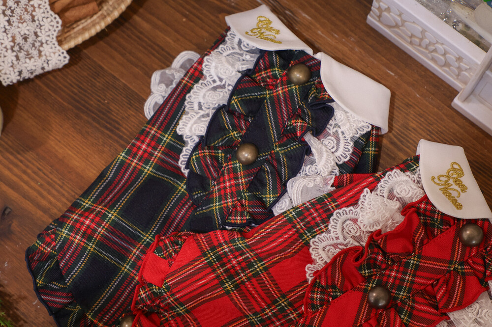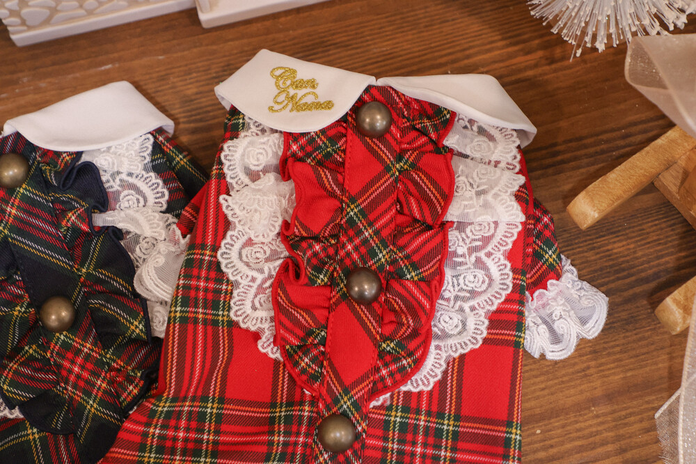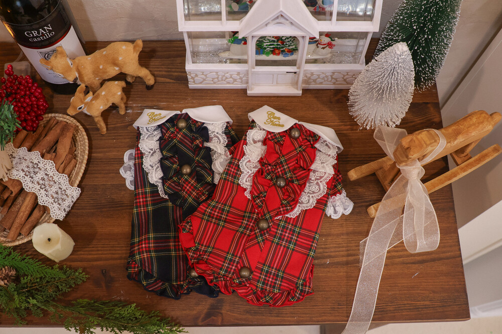 연말 무드에 가장 잘 어울리는 클래식 체크 패턴으로 완성한 원피스예요.