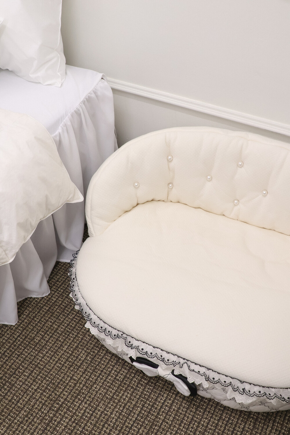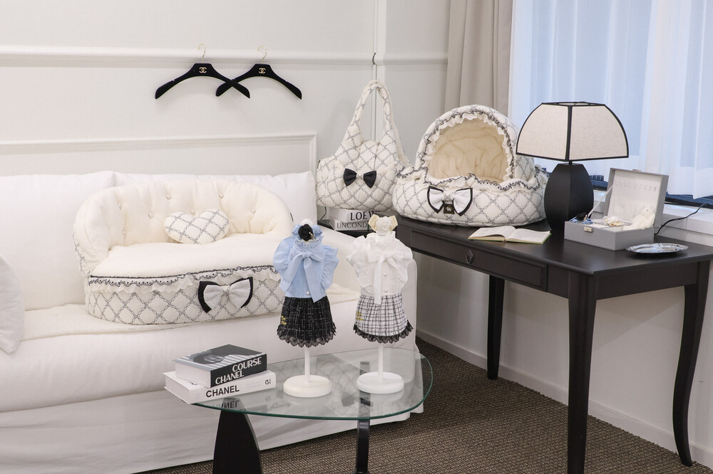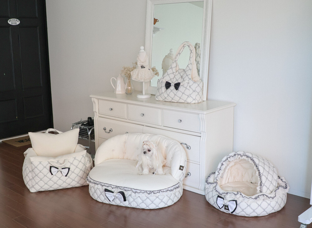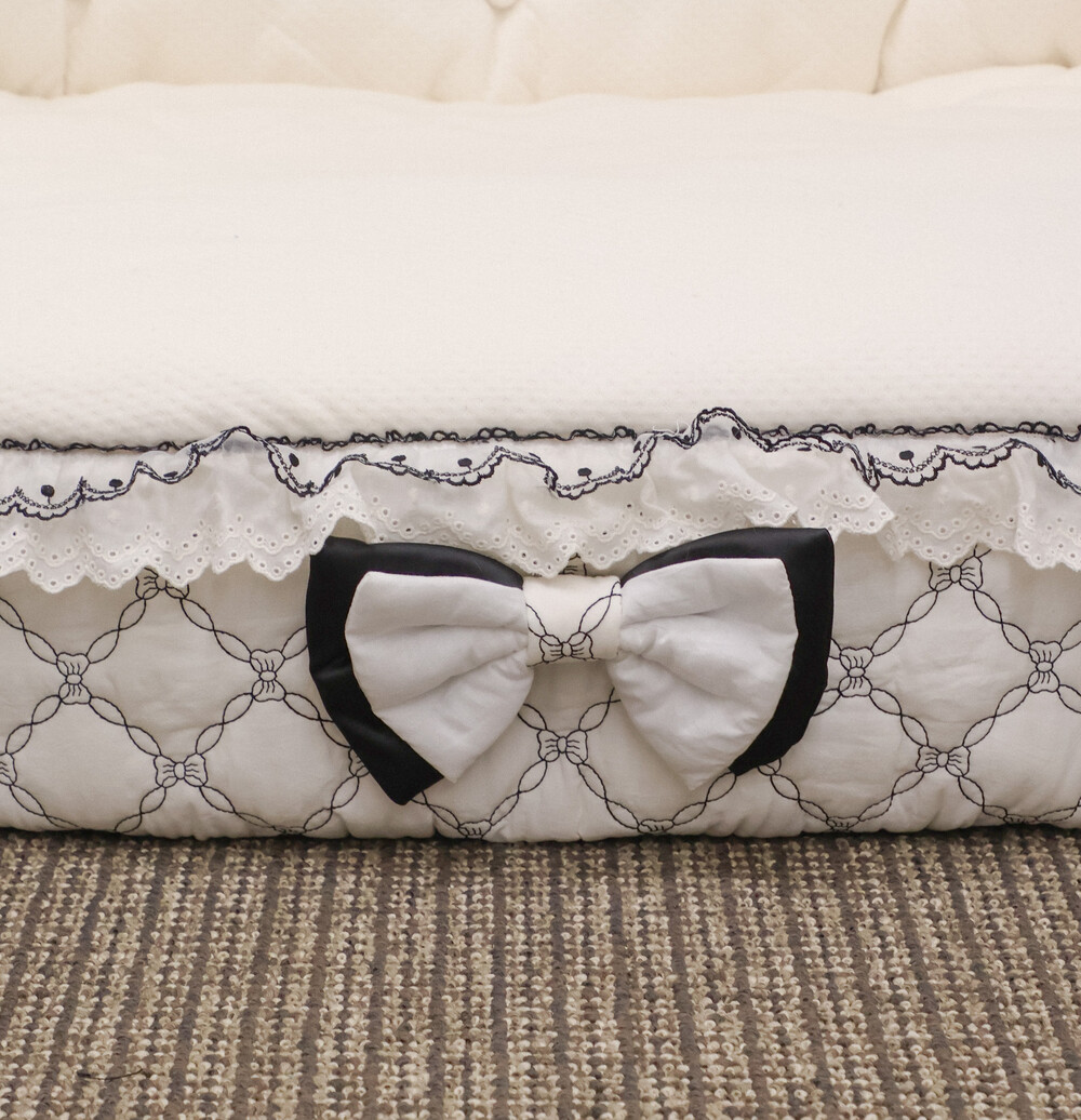 클래식한 블랙 포인트 프릴과 리본 장식이 공간의 품격을 더해줍니다.