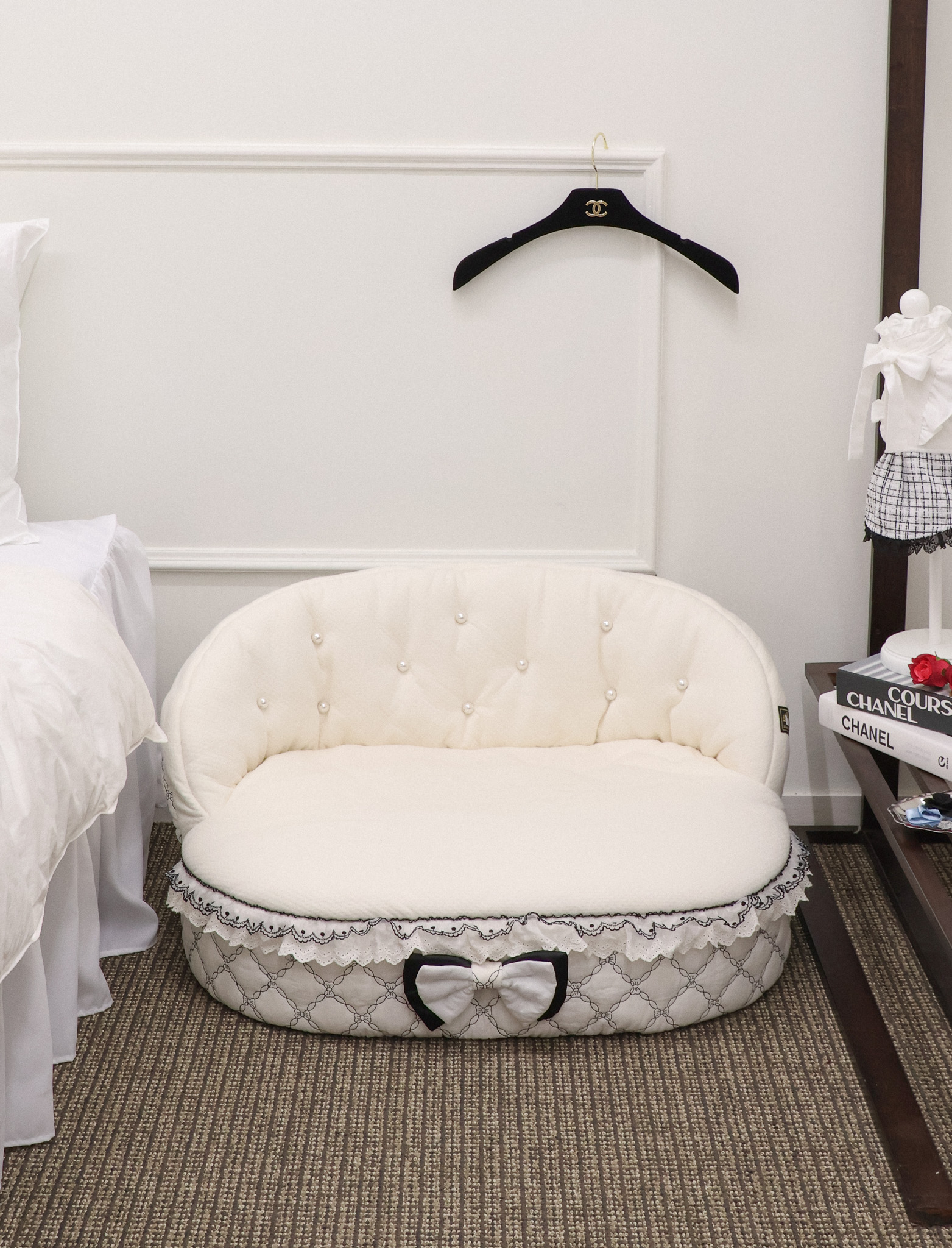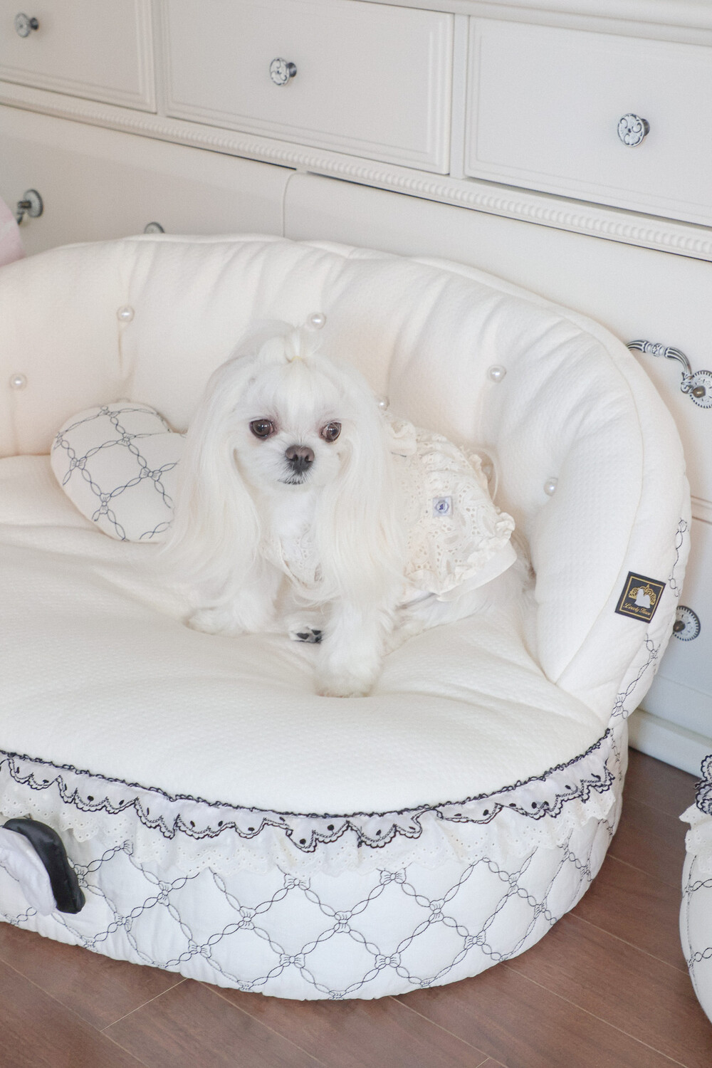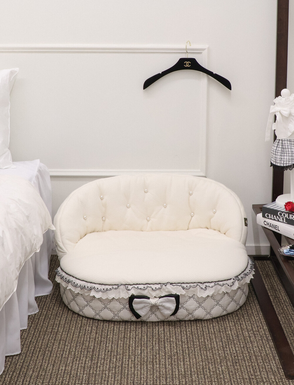클래식한 블랙 포인트 프릴과 리본 장식이 공간의 품격을 더해줍니다.