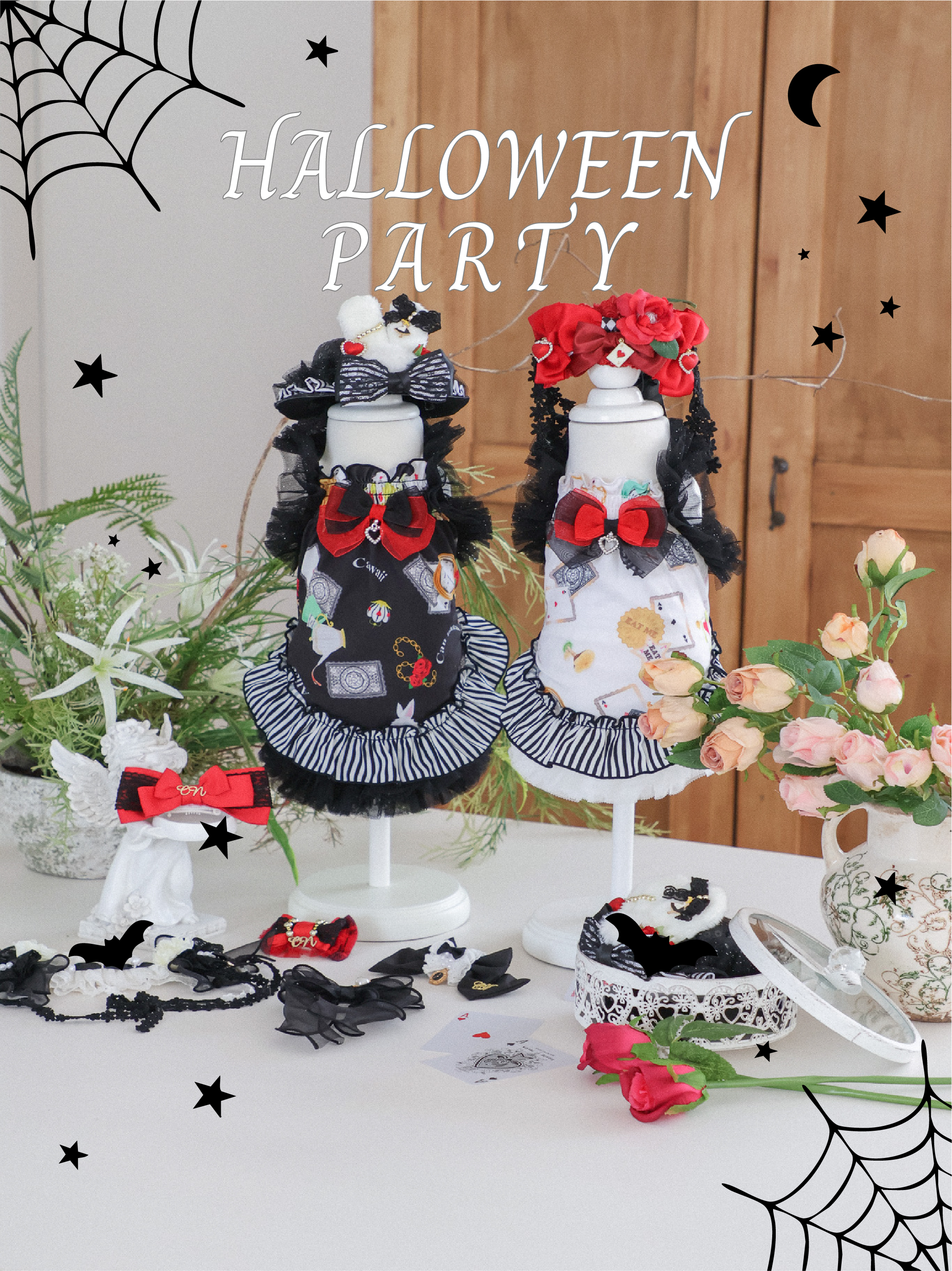이상한 나라의 세계관을 그대로 담아낸 듯한 오리지널 앨리스 드레스 – 할로윈 에디션이에요. 🦇✨