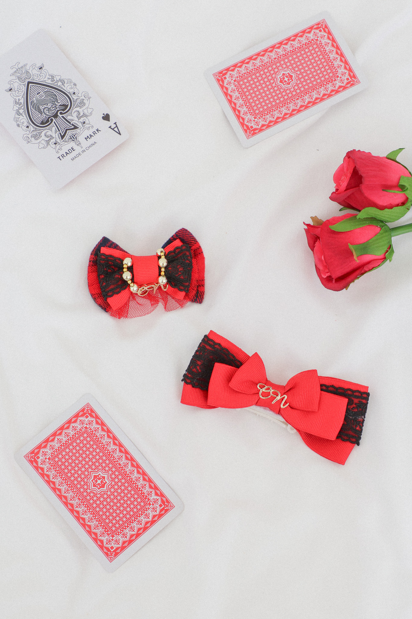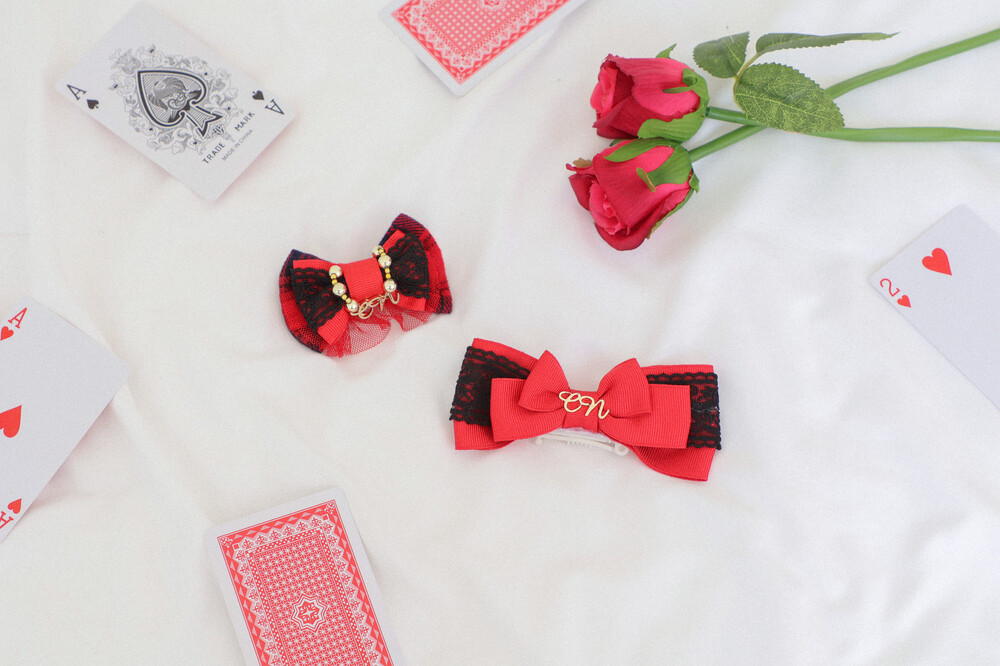 레드 × 블랙 헤어 액세서리 시리즈입니다. 🎀✨