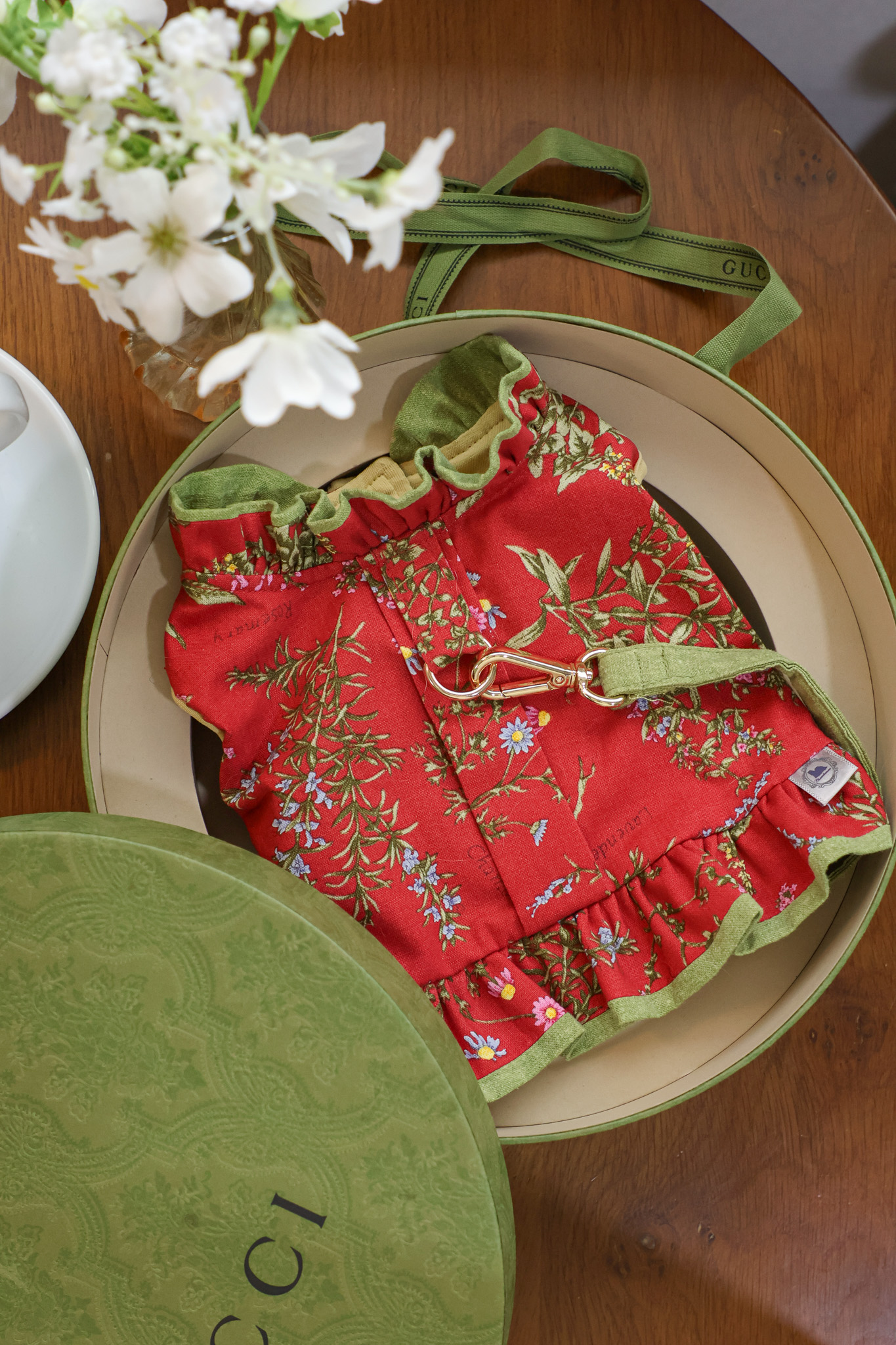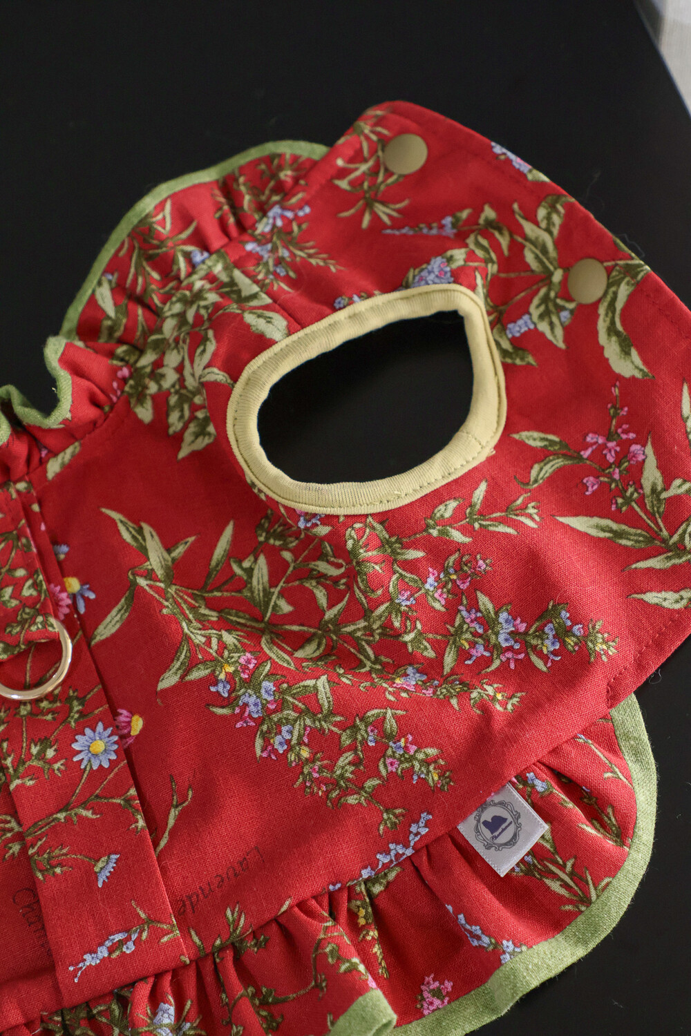 클래식한 레드 플라워 패턴에 올리브 그린 배색을 더한