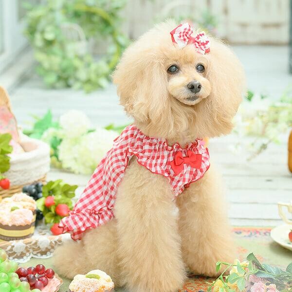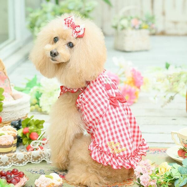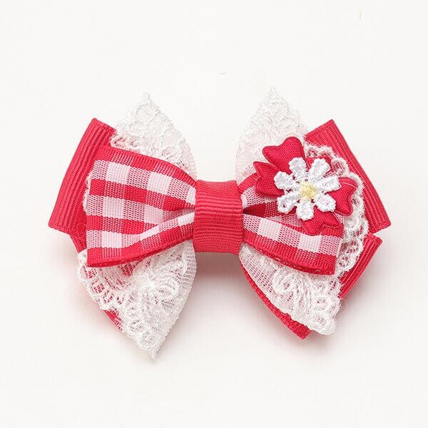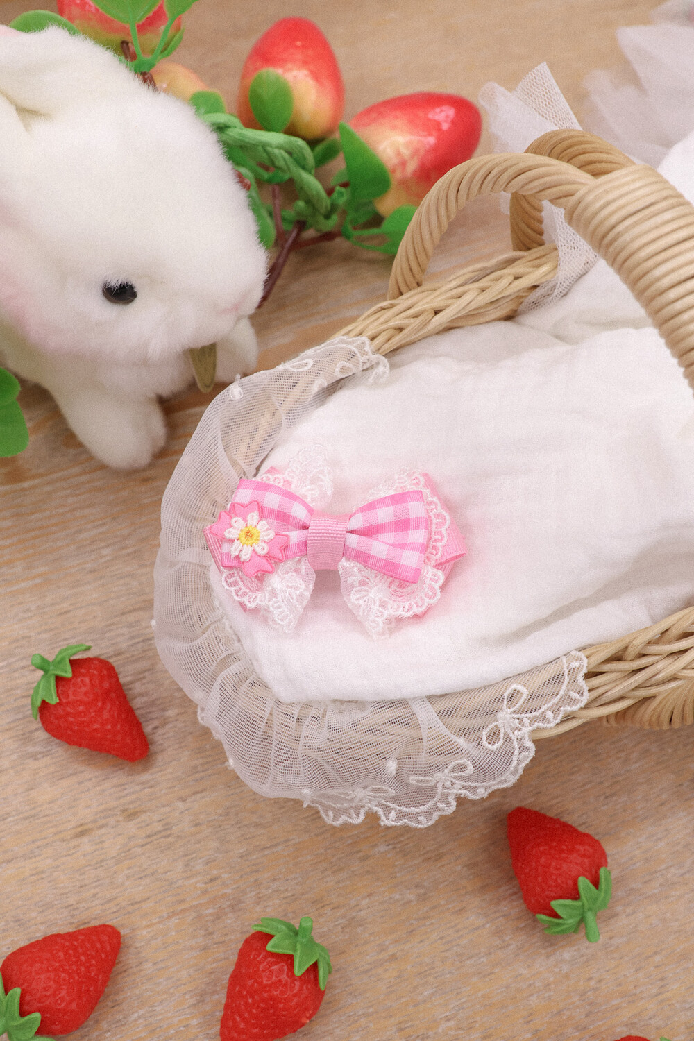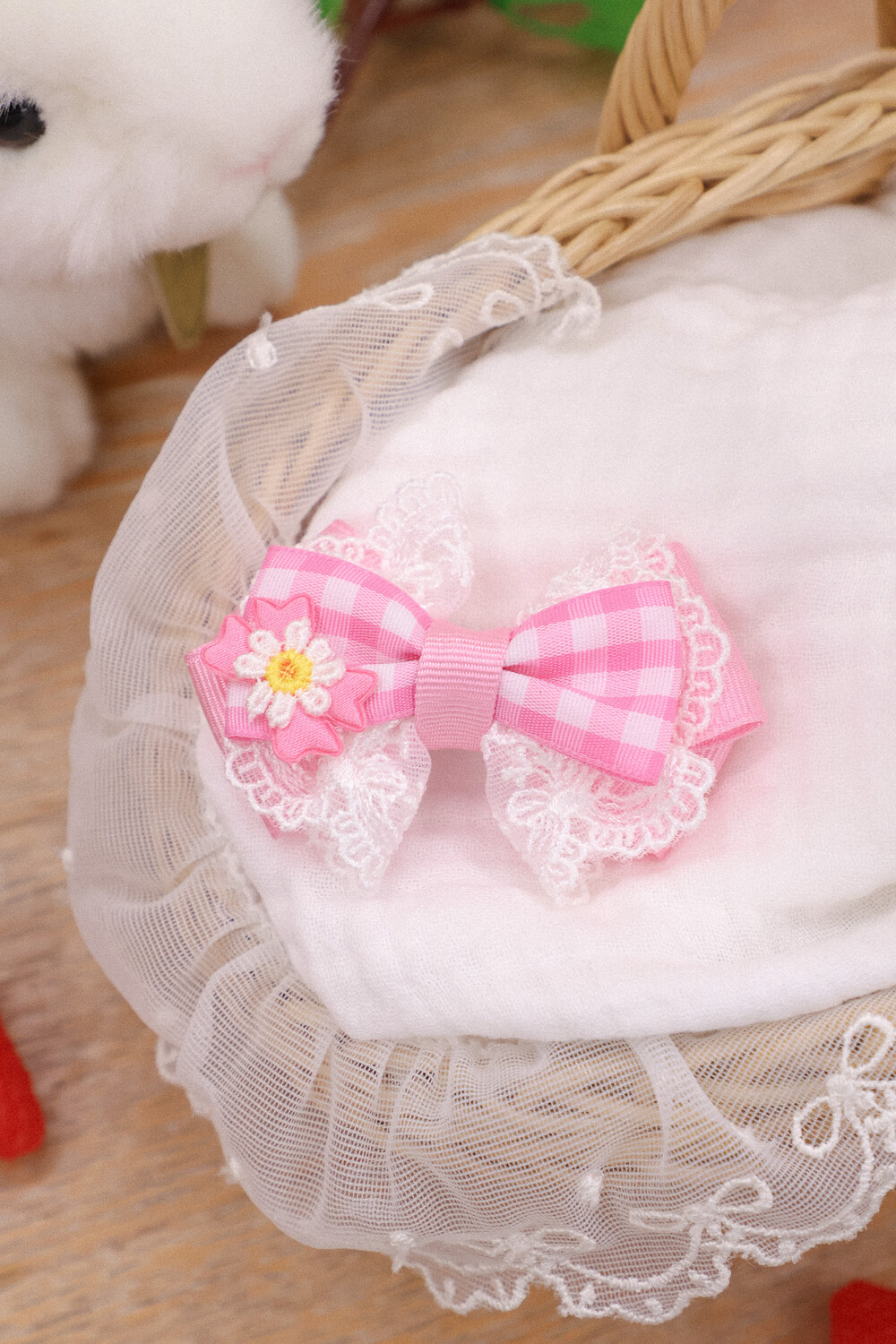 상큼한 핑크와 레드 체크에 레이스, 데이지 자수가 어우러진 러블리 포인트.