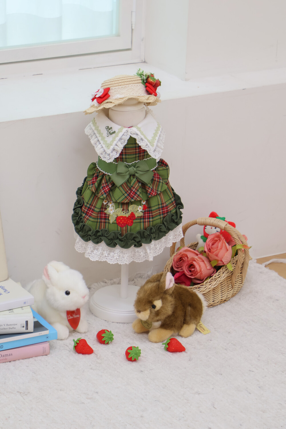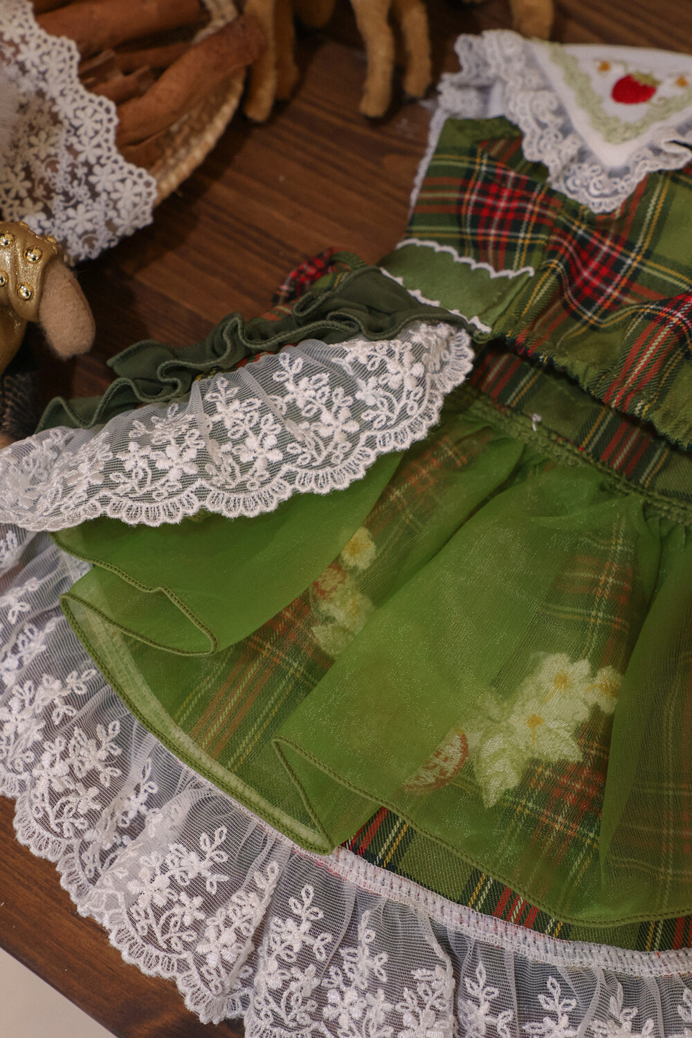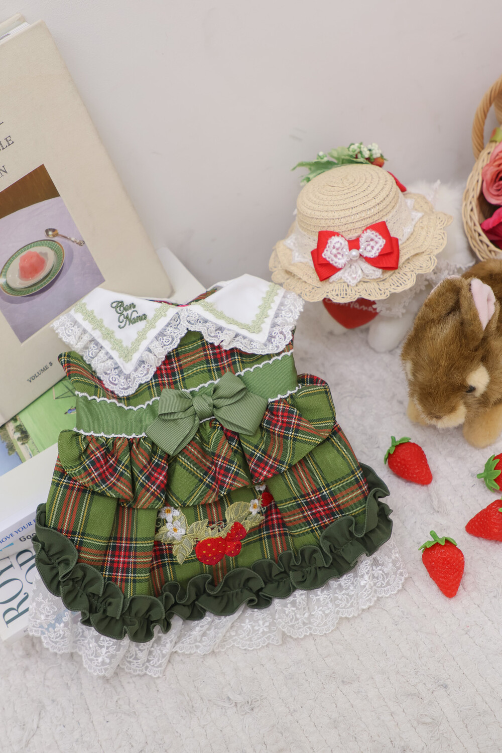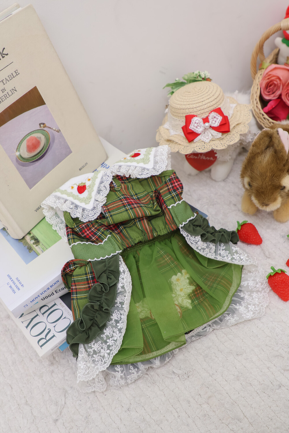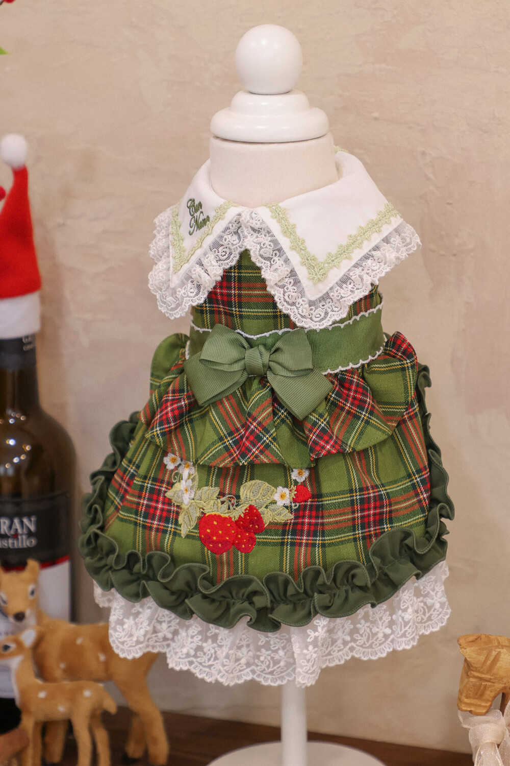 클래식한 그린 체크 패턴에 달콤한 딸기 자수가 더해진 겨울 원피스예요 ❄️✨