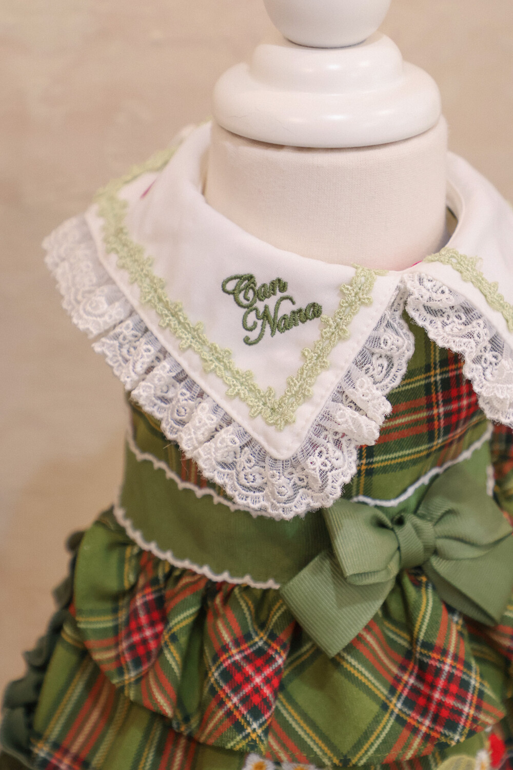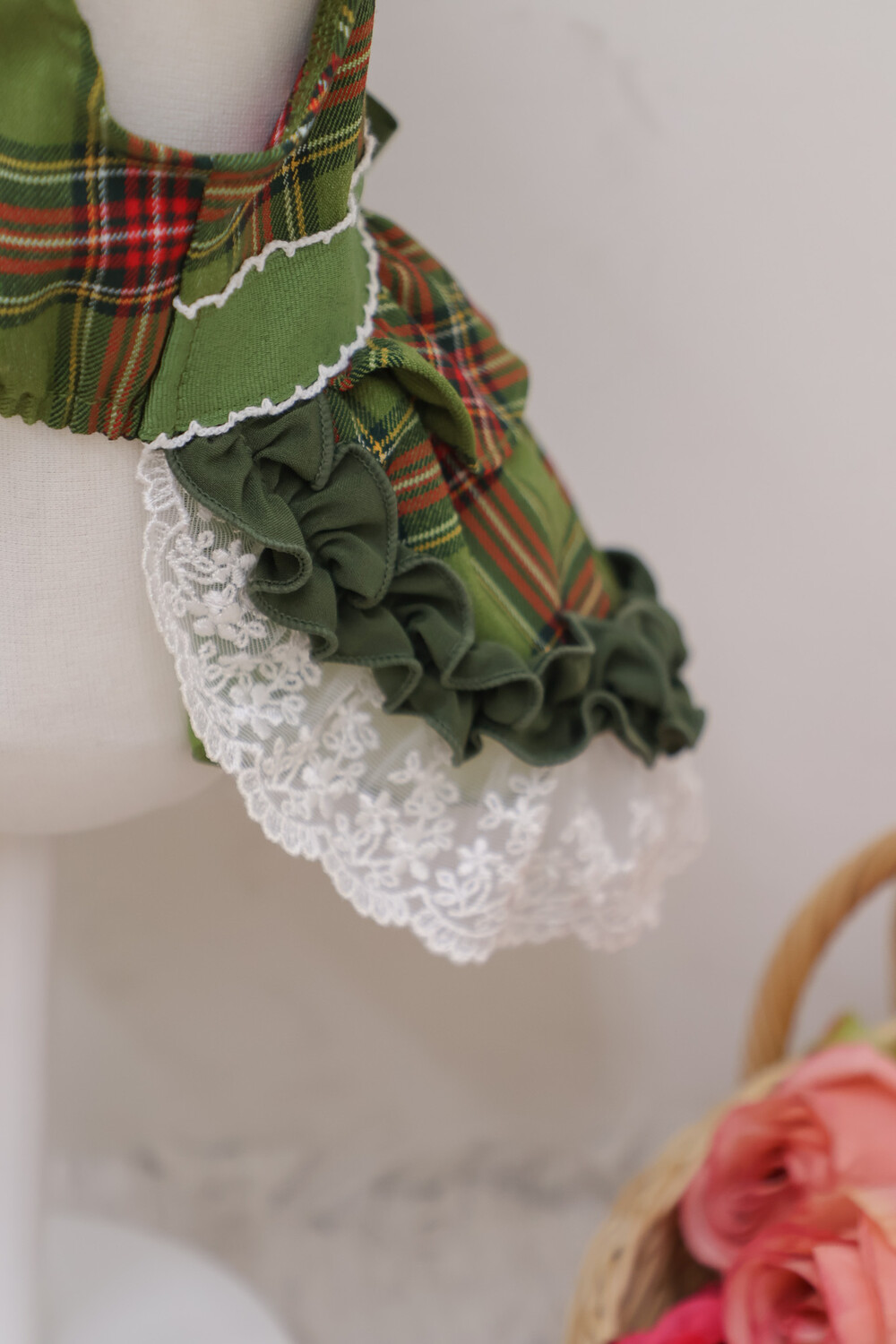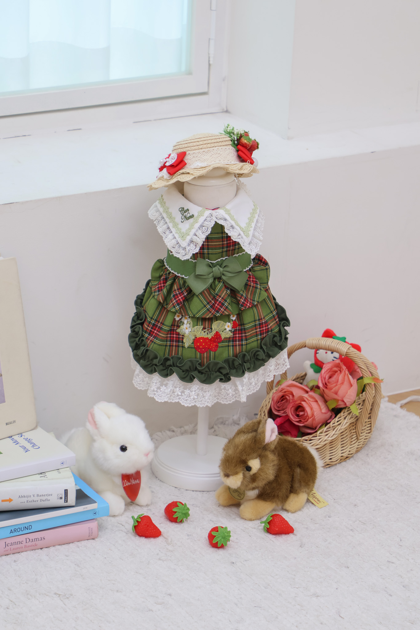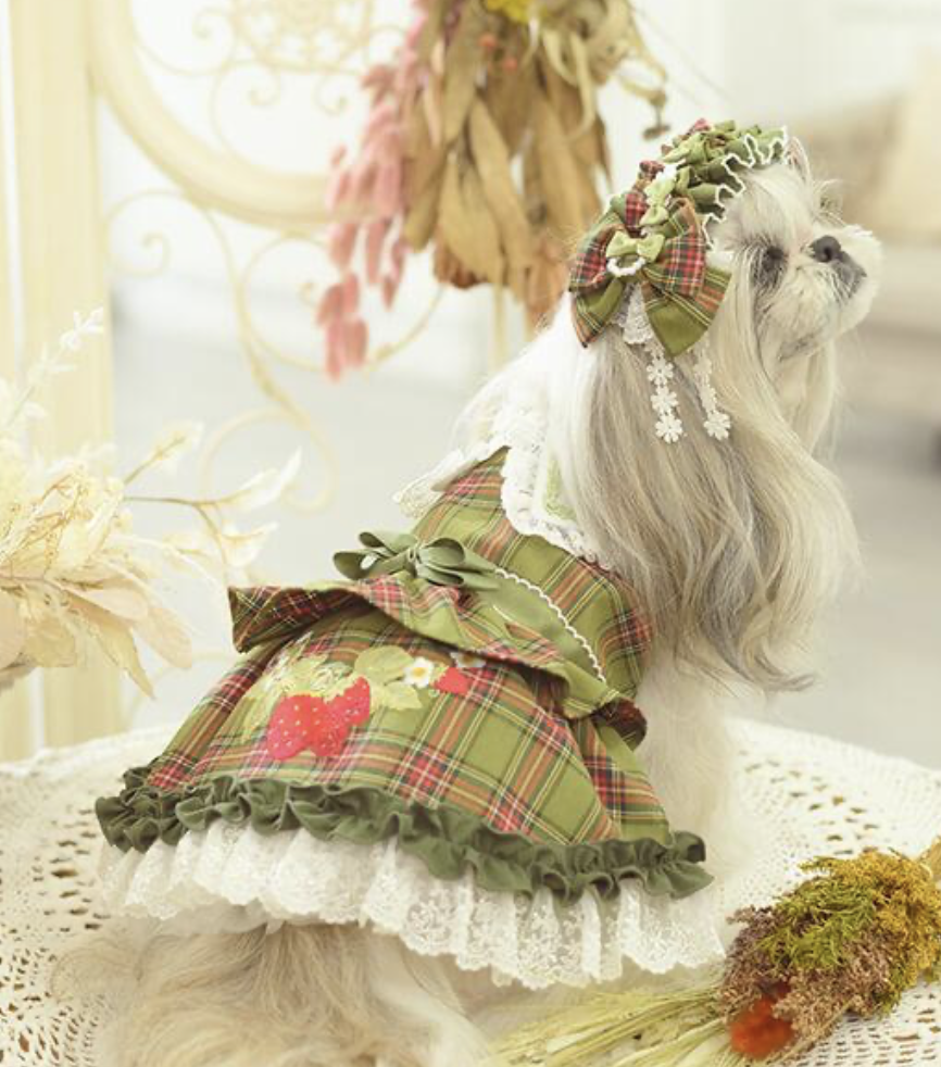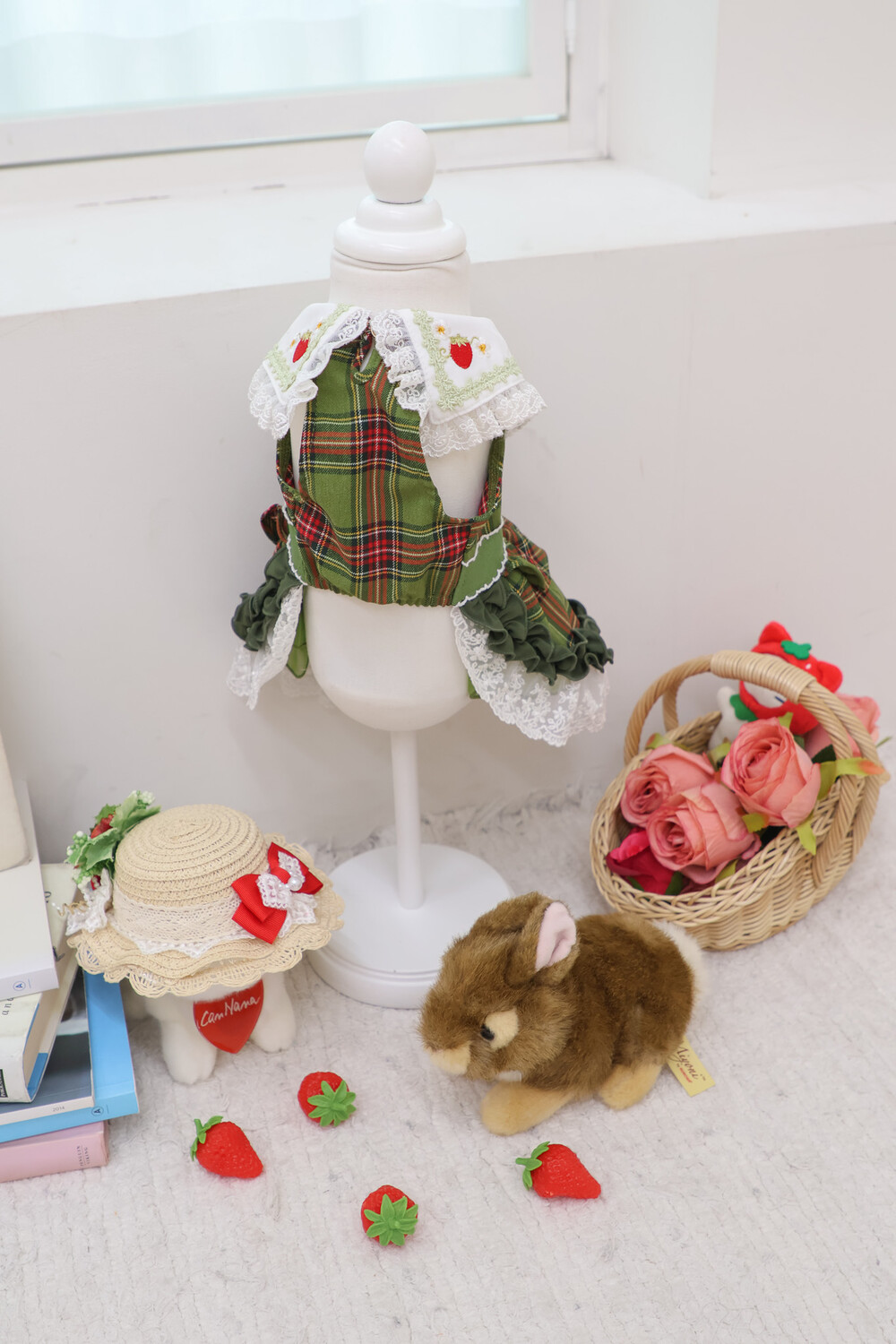 클래식한 그린 체크 패턴에 달콤한 딸기 자수가 더해진 겨울 원피스예요 ❄️✨