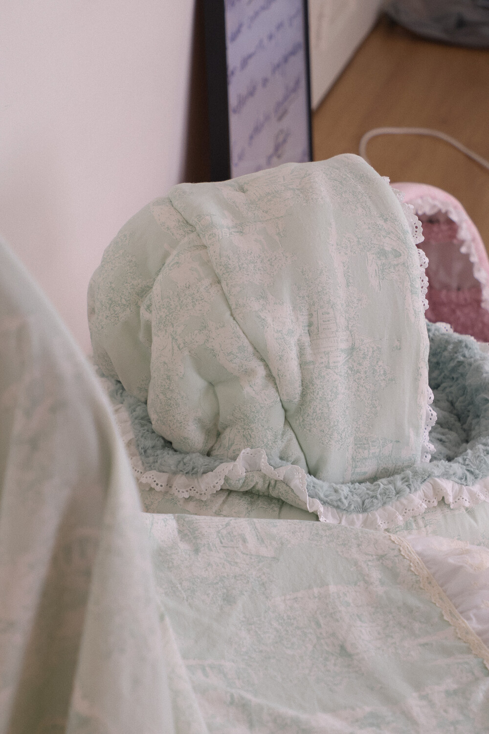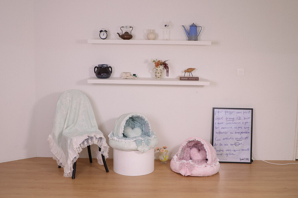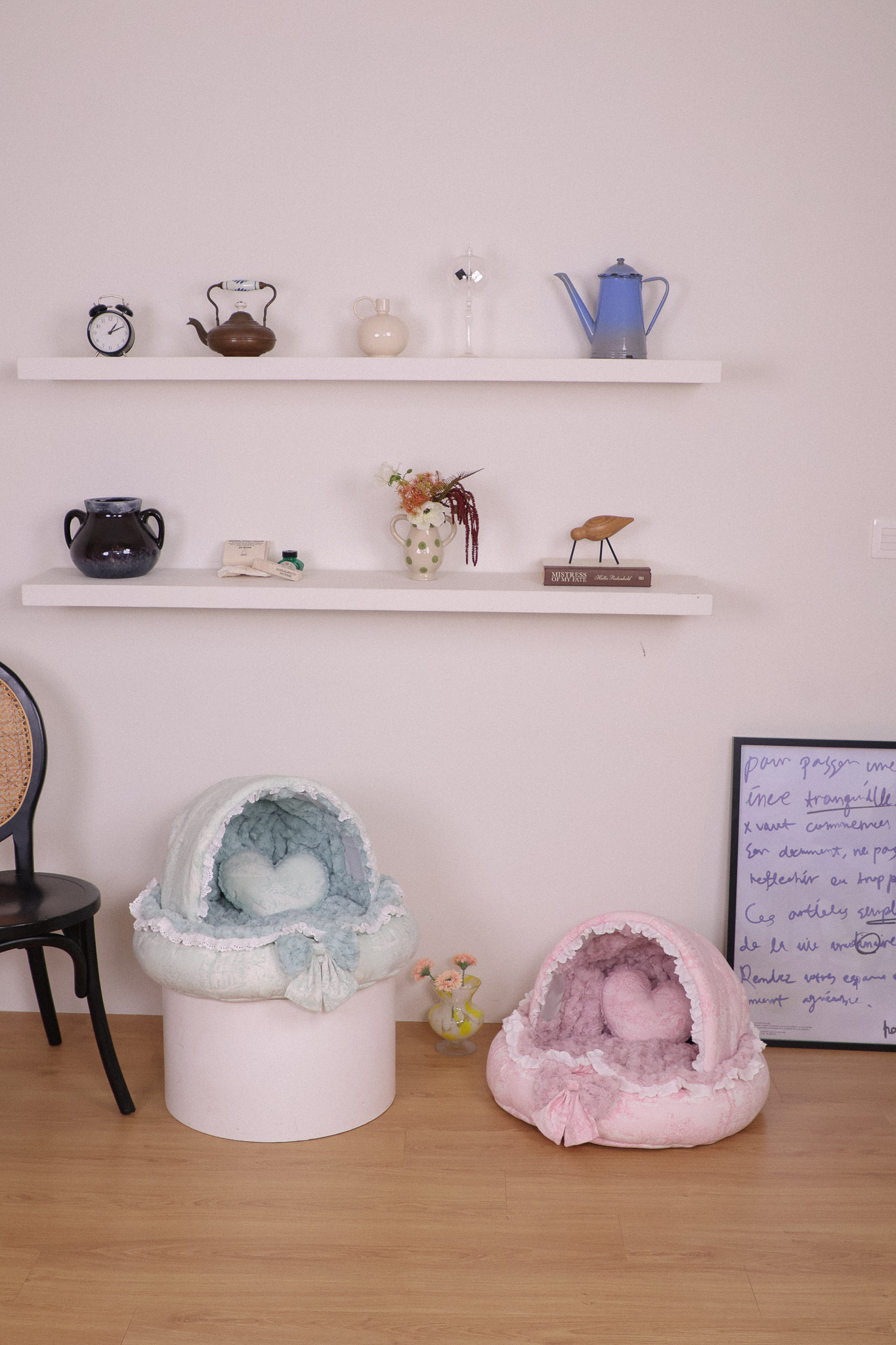 부드러운 파스텔 컬러의 패브릭 지붕이 포근하게 덮인,