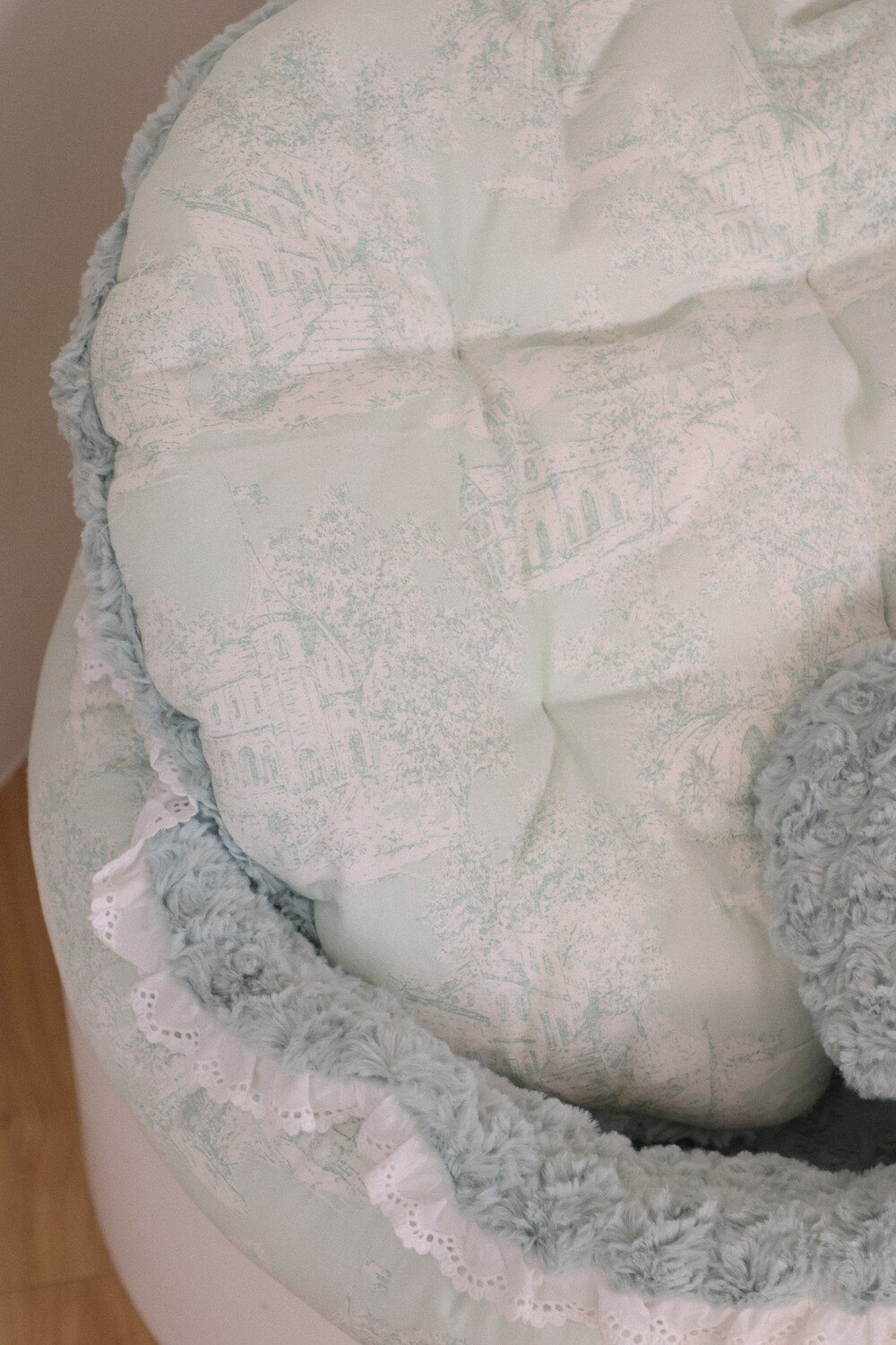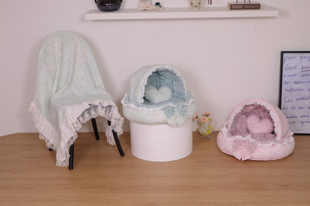 하우스 아래의 쿠션은 앞뒤 양면 디자인으로 제작되어