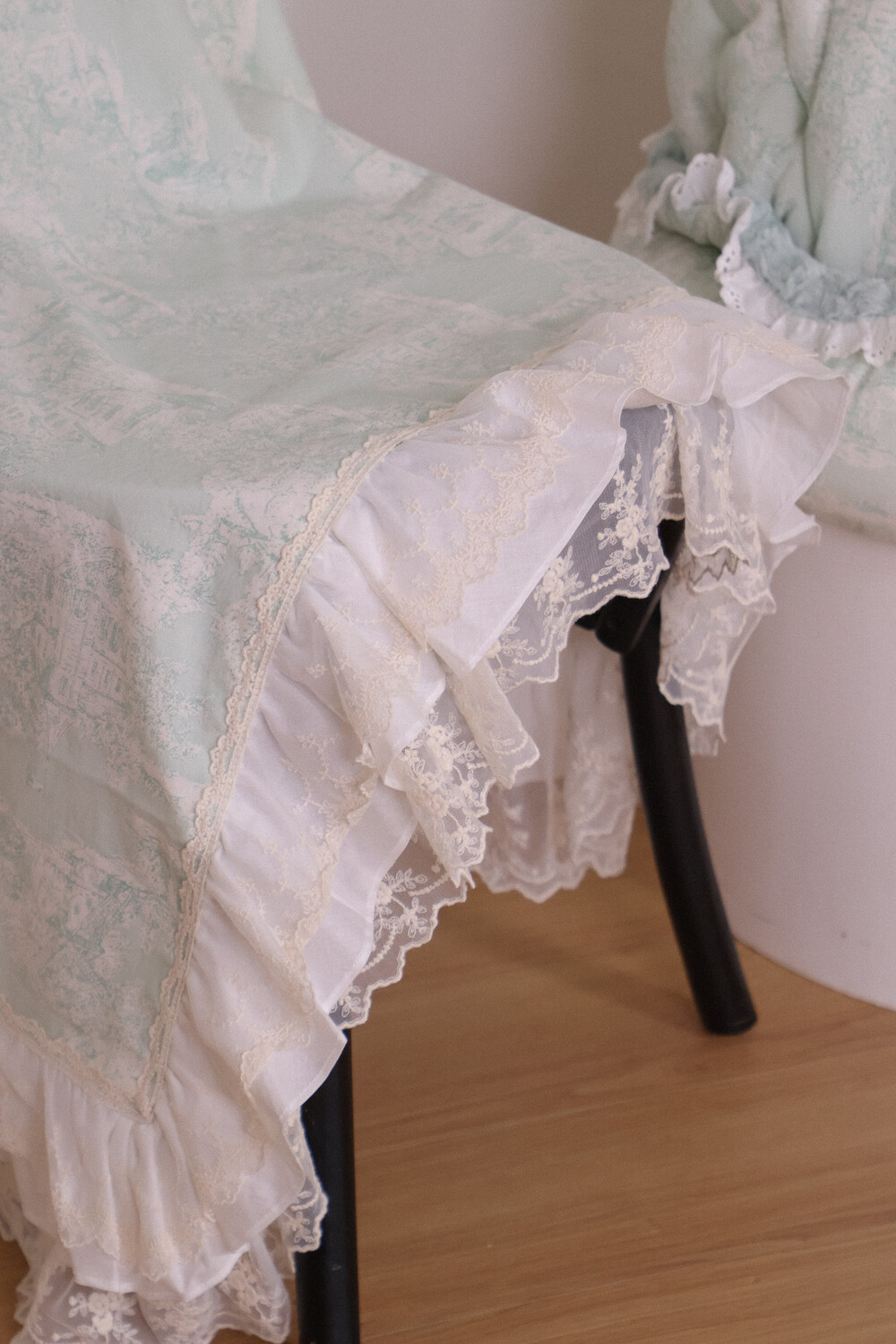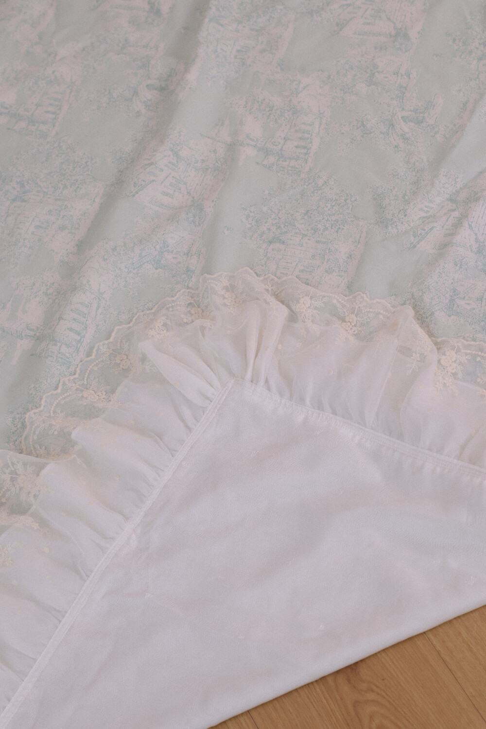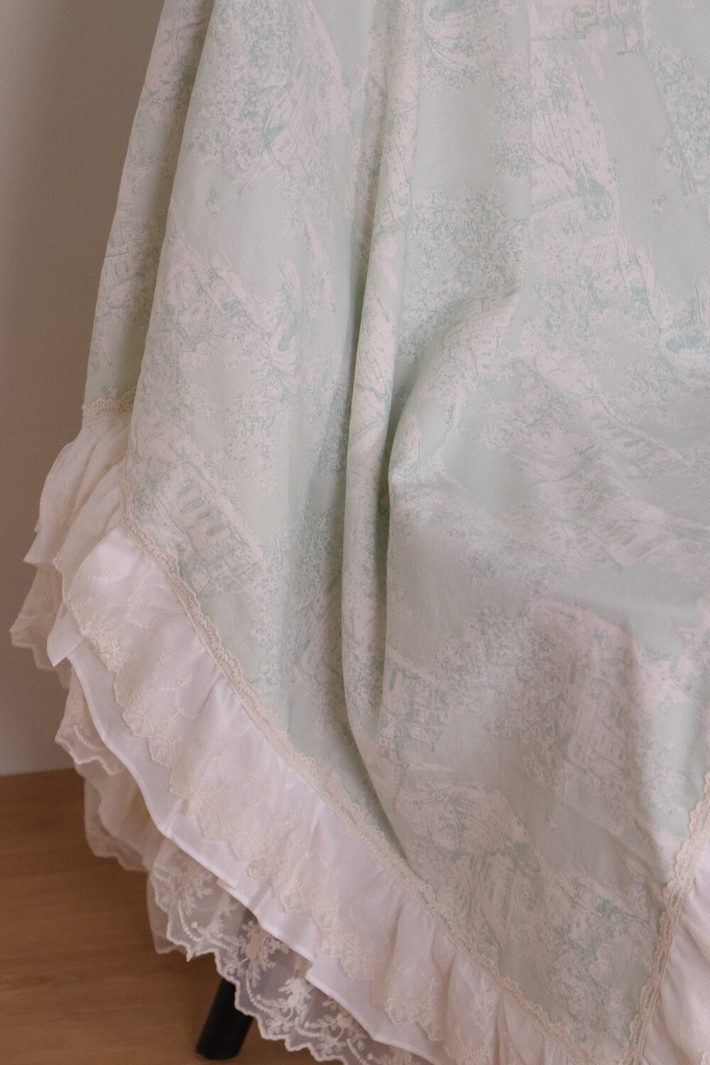 밑단은 2중 레이스와 살랑이는 프릴 라운딩 디테일로 마감되어