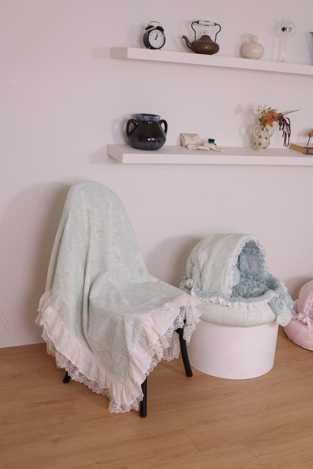 겉감은 부드러운 파스텔 민트 패브릭으로 포근한 분위기를 연출해주고,