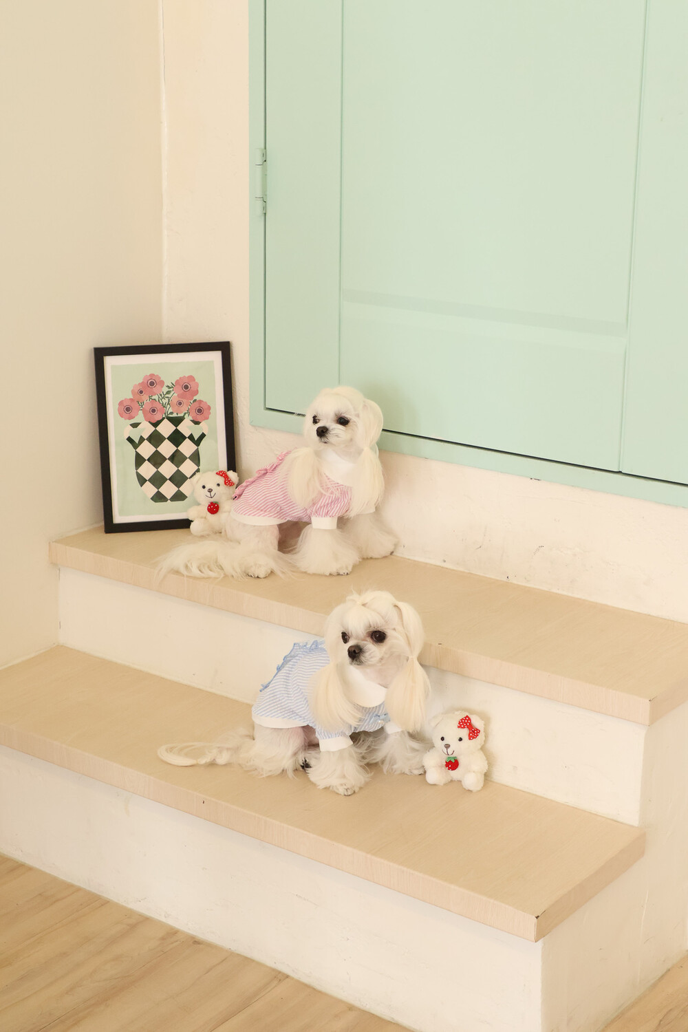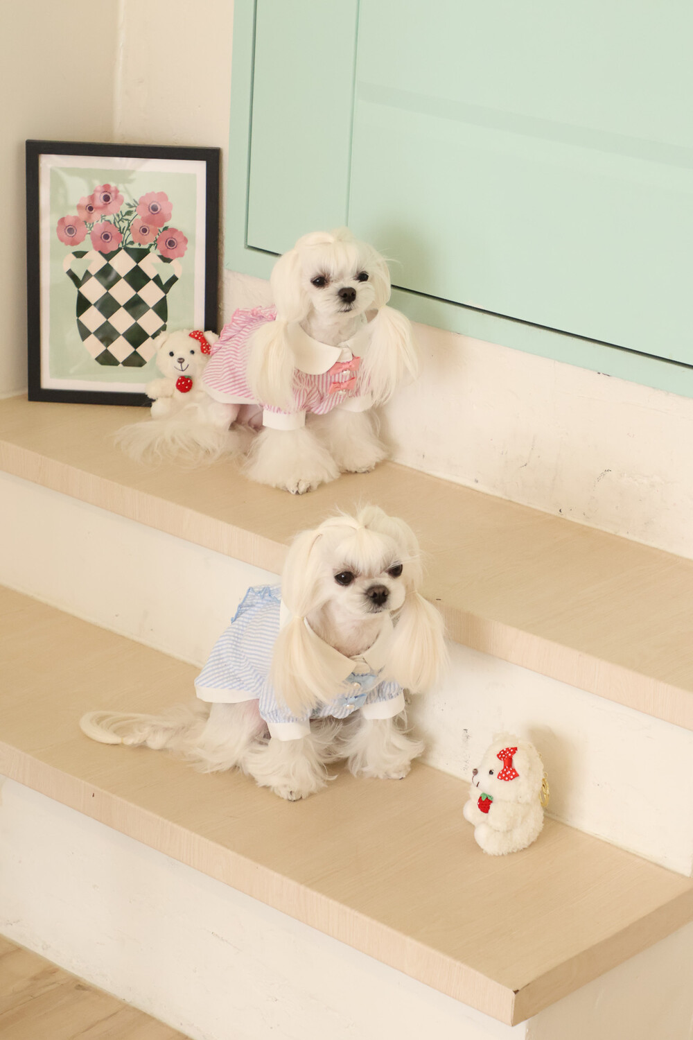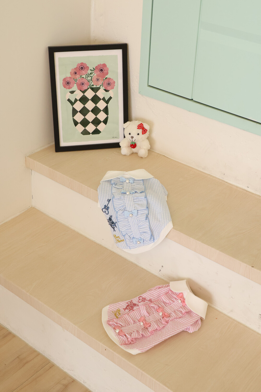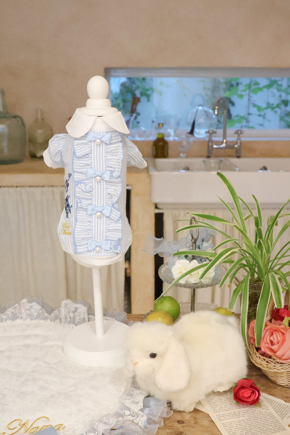 부드러운 스트라이프 원단 위에 앨리스 세계관 자수가 사랑스러운 포인트가 되어줍니다.