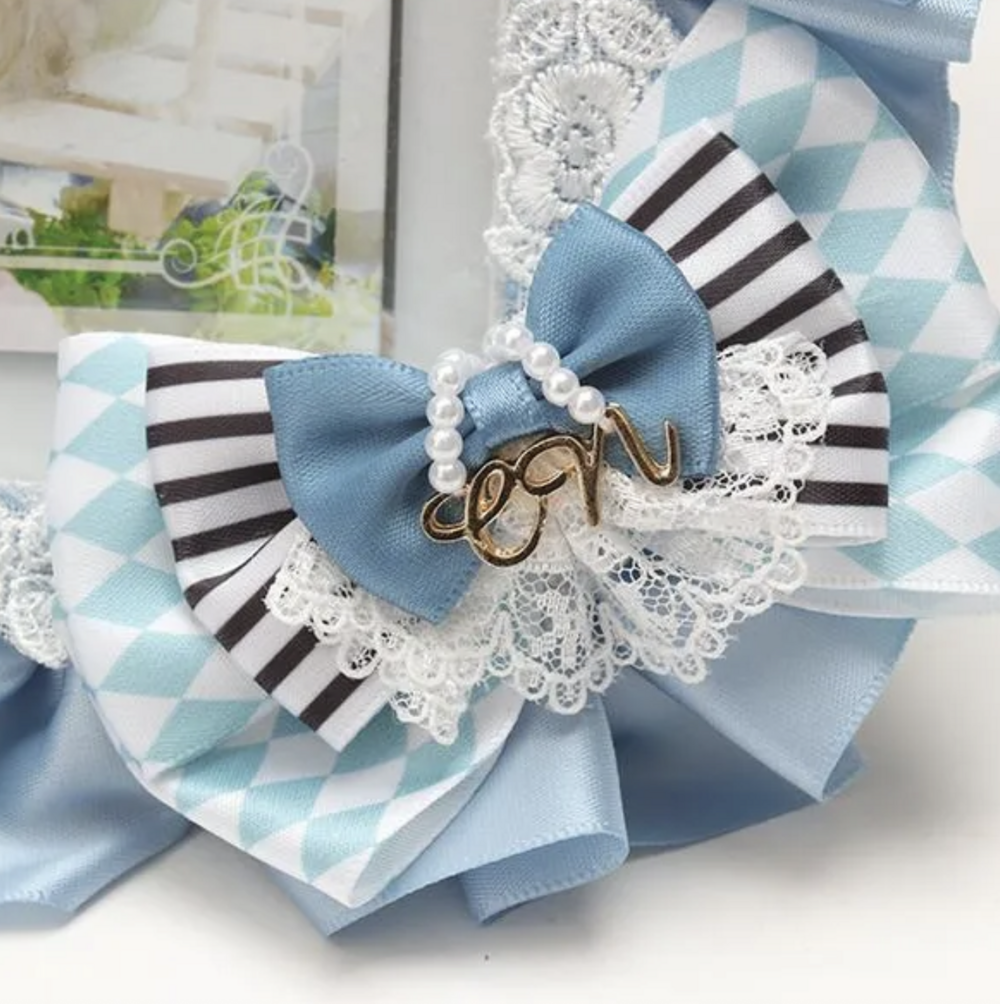 풍성한 새틴 프릴과 다이아 체크 리본, 레이스와 진주 장식까지 더해져